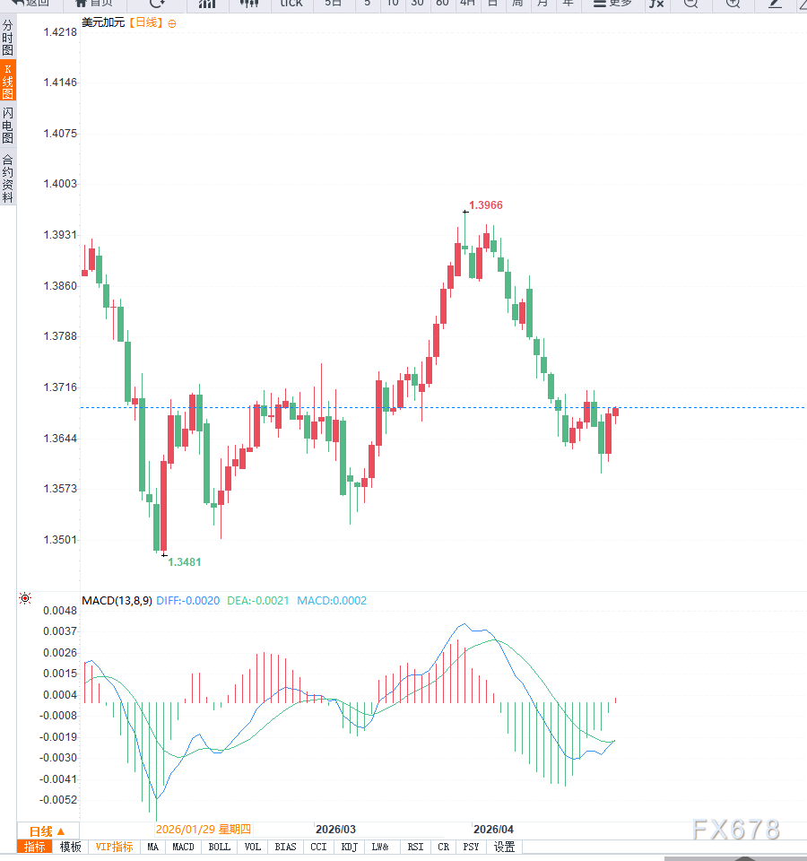 从地缘局势来看,美国与伊朗之间的谈判进展受阻,市场对冲突缓解的预期明显降温。美国方面取消相关外交行程并对谈判方案表达不满,进一步加剧市场不确定性。在此背景下,美元作为全球储备货币的避险属性得到强化,吸引资金流入,从而对美元兑加元形成支撑。